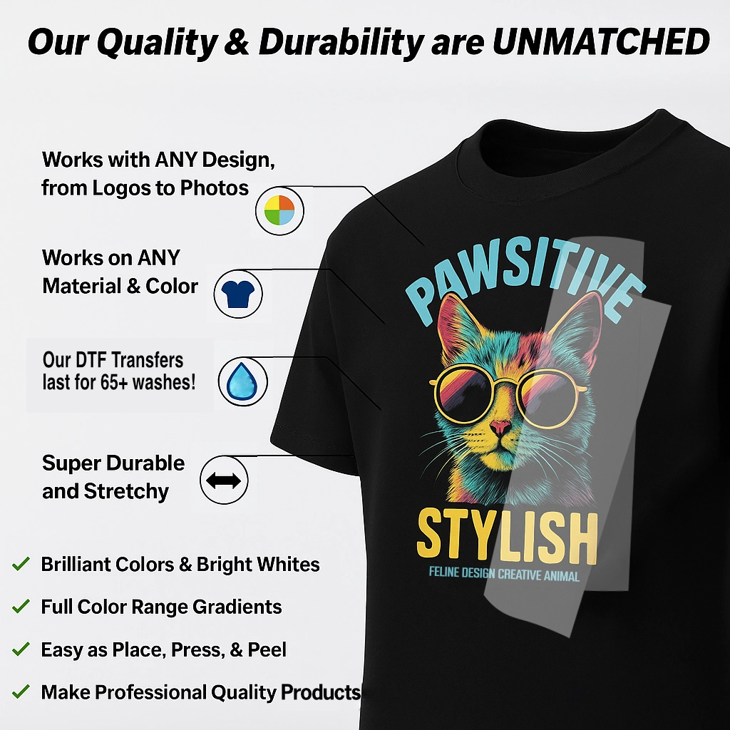 Upload your pre-built (ready to print) high resolution (300dpi) gang sheet as a transparent png (Please do not mirror the images). All gang sheets will now be printed with our new hot peel film, just press and peel.